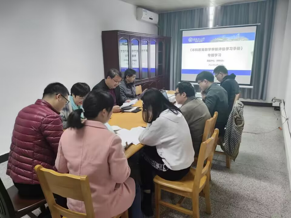 本部门教师学习了《本科教育教学审核评估学习手册》等资料,会上,周焕福主任再次强调了新一轮审核评估的意义、总体目标和实施方案,要求全体人员要高度重视,相互配合,认真撰写审核评估报告,重点围绕审核评估指标及多部门数据核查展开工作,并就实施过程中遇到的问题,进行了讨论和意见交换,要求根据审核评估进度和任务节点,倒排时间表,对标对表,查漏补缺、及时整改,确保太阳集团2138网址顺利完成本轮审核评估工作。